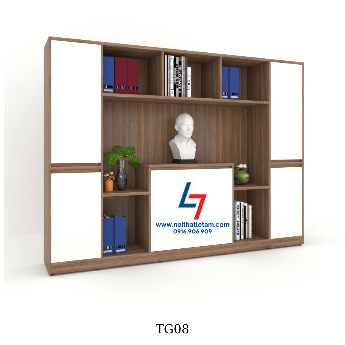 Tủ gỗ công nghiệp MFC TG08 được thiết kế hiện đại, tiện dụng với sự kết hợp giữa các ngăn lưu trữ kín và không gian trang trí.